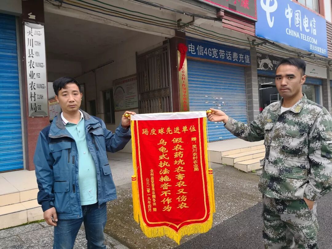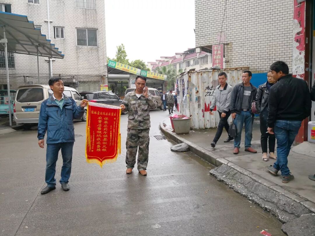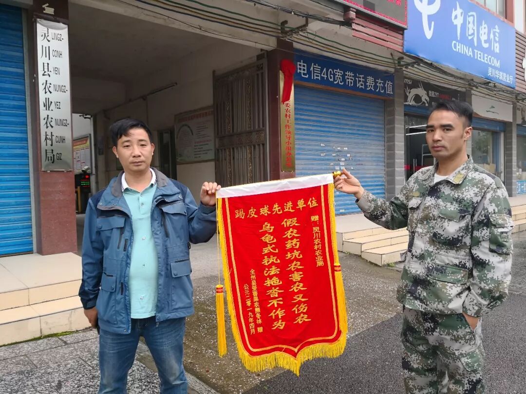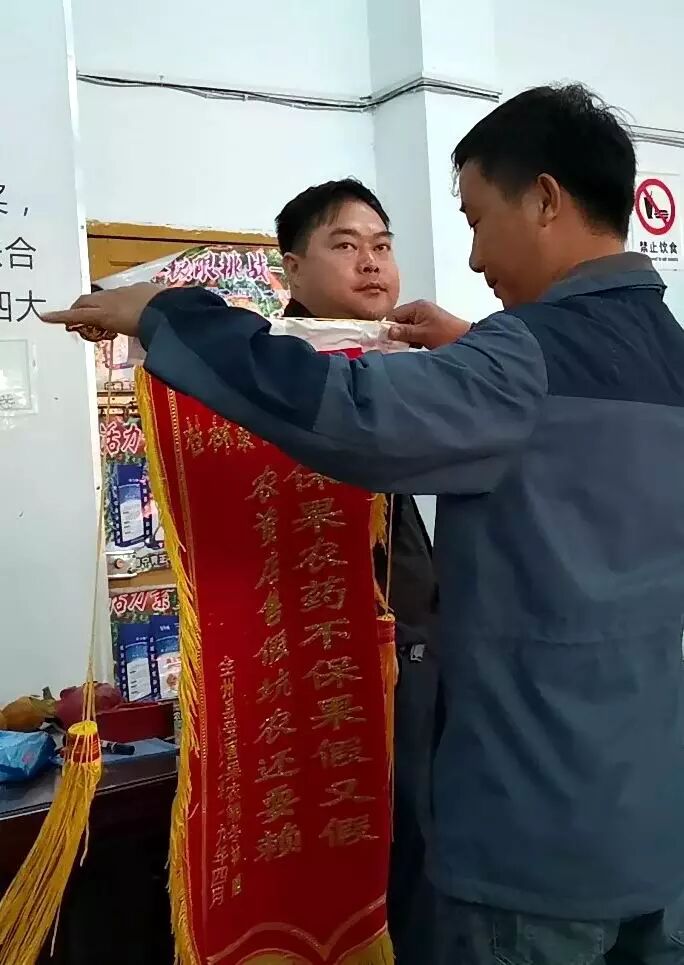 熊冬林说了送锦旗的原因。2018年5月17日,全州县农业执法大队文大队长,就将他的投诉转给了灵川农业执法大队大队长阳文军,还给了阳的电话,让他到灵川来。他到了灵川县,打电话给阳文军,阳文军竟然叫他不用来了,加微信发农药图片来就行。最后,阳文军拖了5天才去调查。