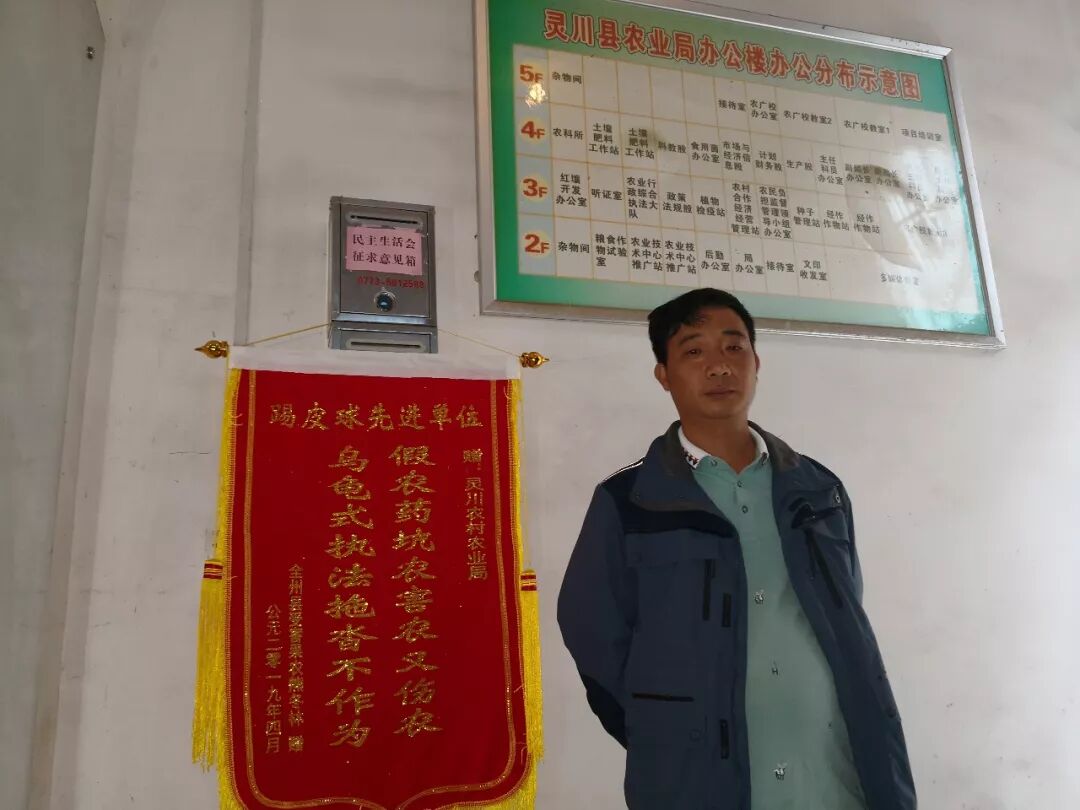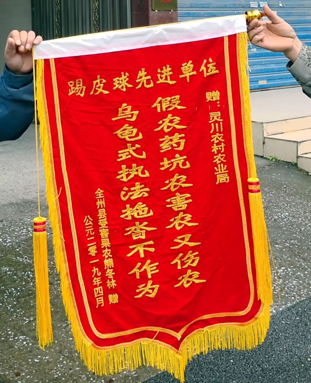 4月13日,熊冬林除了给农资店送锦旗外,还给灵川县农业农村局送了一面“踢皮球先进单位”的锦旗,上面写着“假农药坑农害农又伤农,乌龟式执法拖沓不作为!”