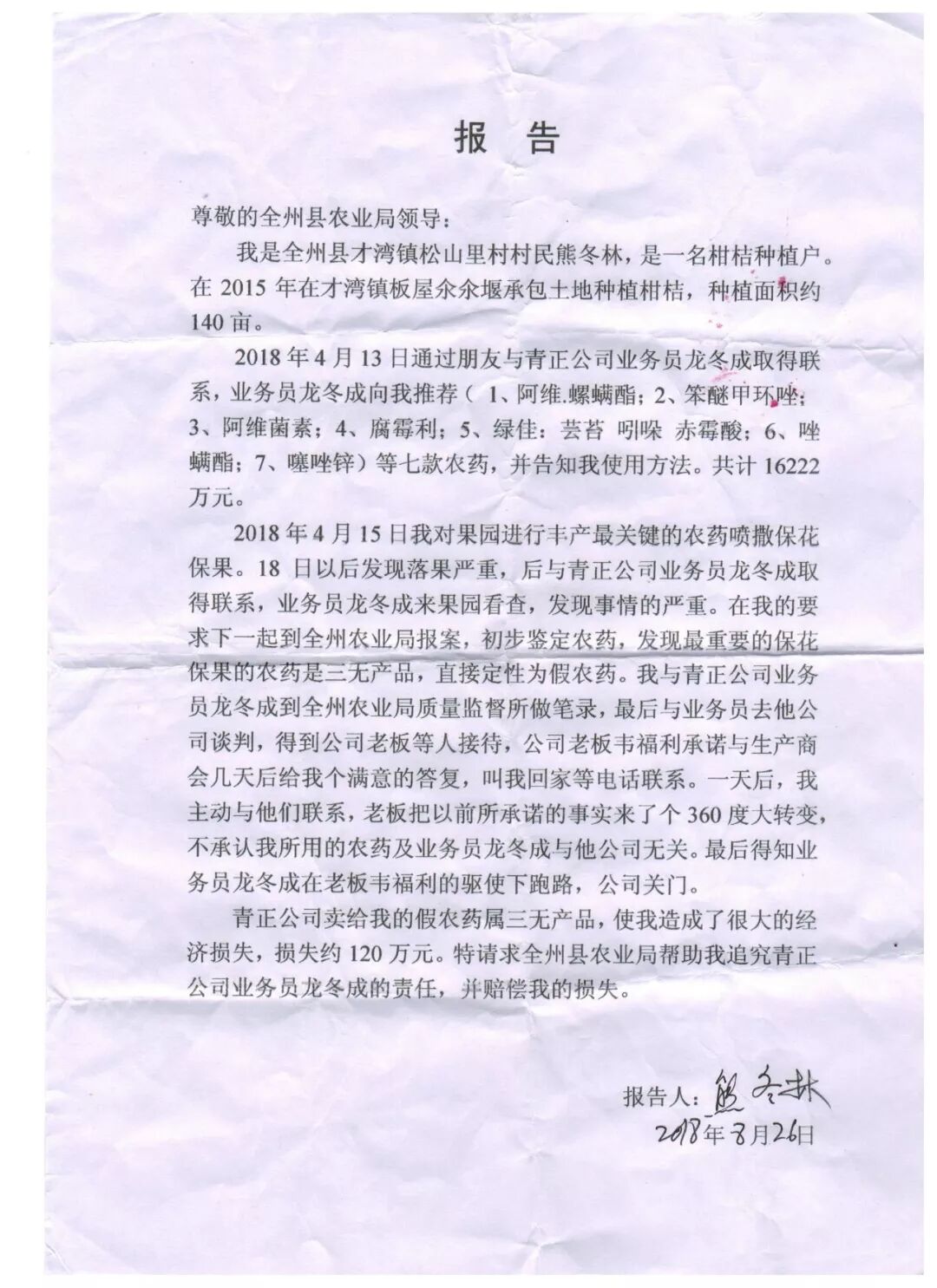 这时,广西青正农资公司估计收到报信,关门了。灵川农业执法大队简单调查一下,之后就不理了。