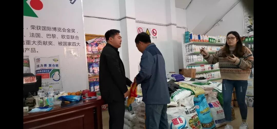 旁边其他看农药的群众见状,过来围观,看了锦旗上的字后,说幸好还没有买这里的农药,走了。